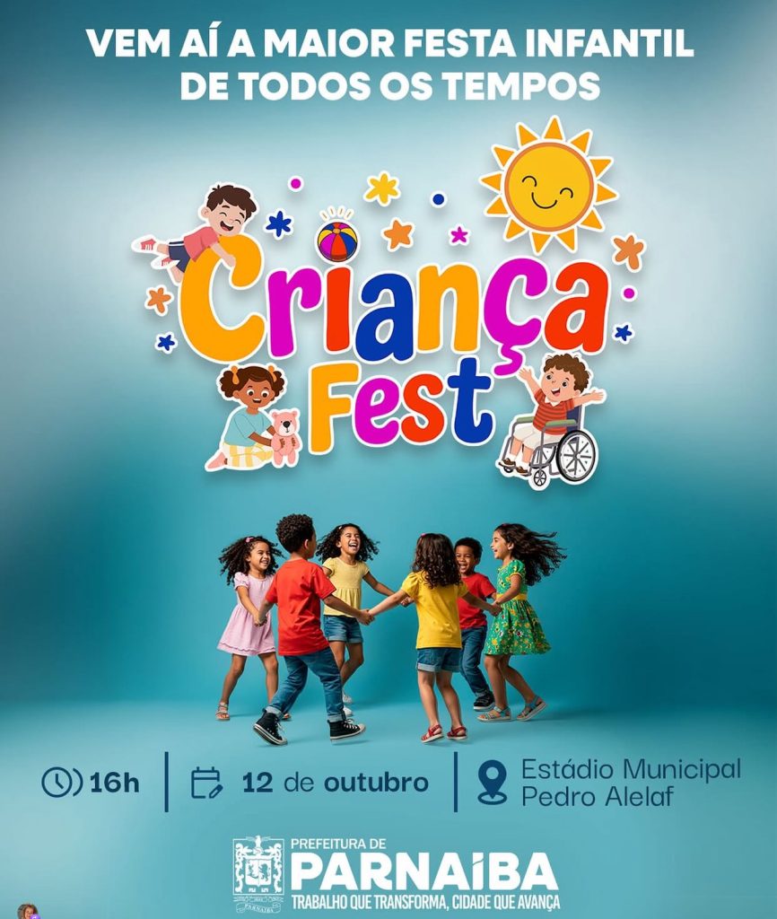 O evento festivo das crianças parnaibanas será realizado no dia 12 de outubro de 2025, às 16h, no Estádio Municipal Pedro Alelaf, no Bairro Dirceu Arcoverde.