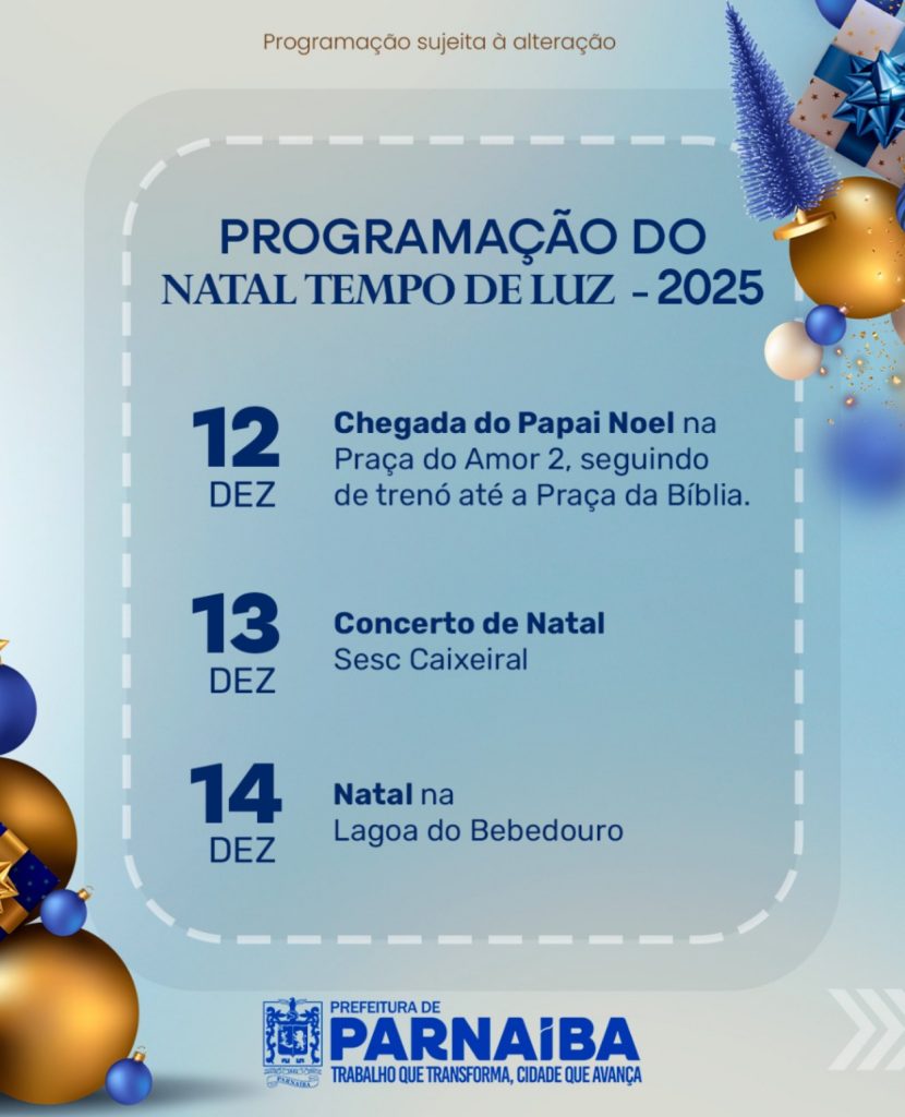 O prefeito Francisco Emanuel Cunha de Brito preparou uma programação especial do Natal Tempo de Luz 2025 para os parnaibanos e visitantes.