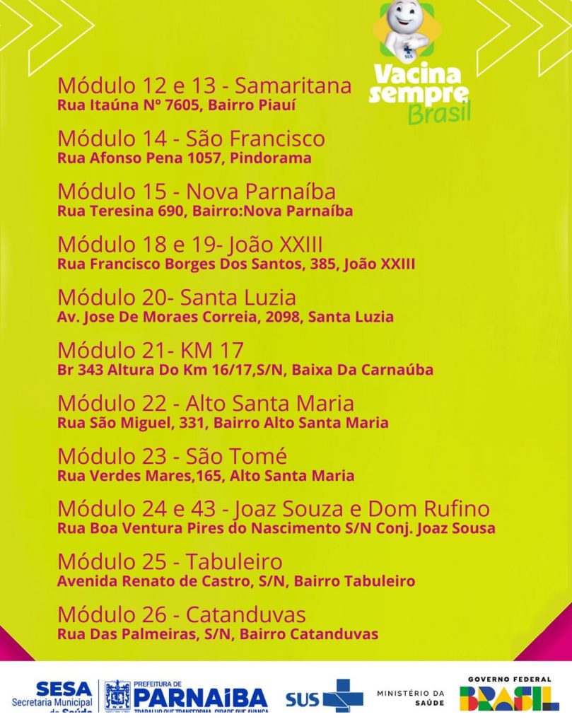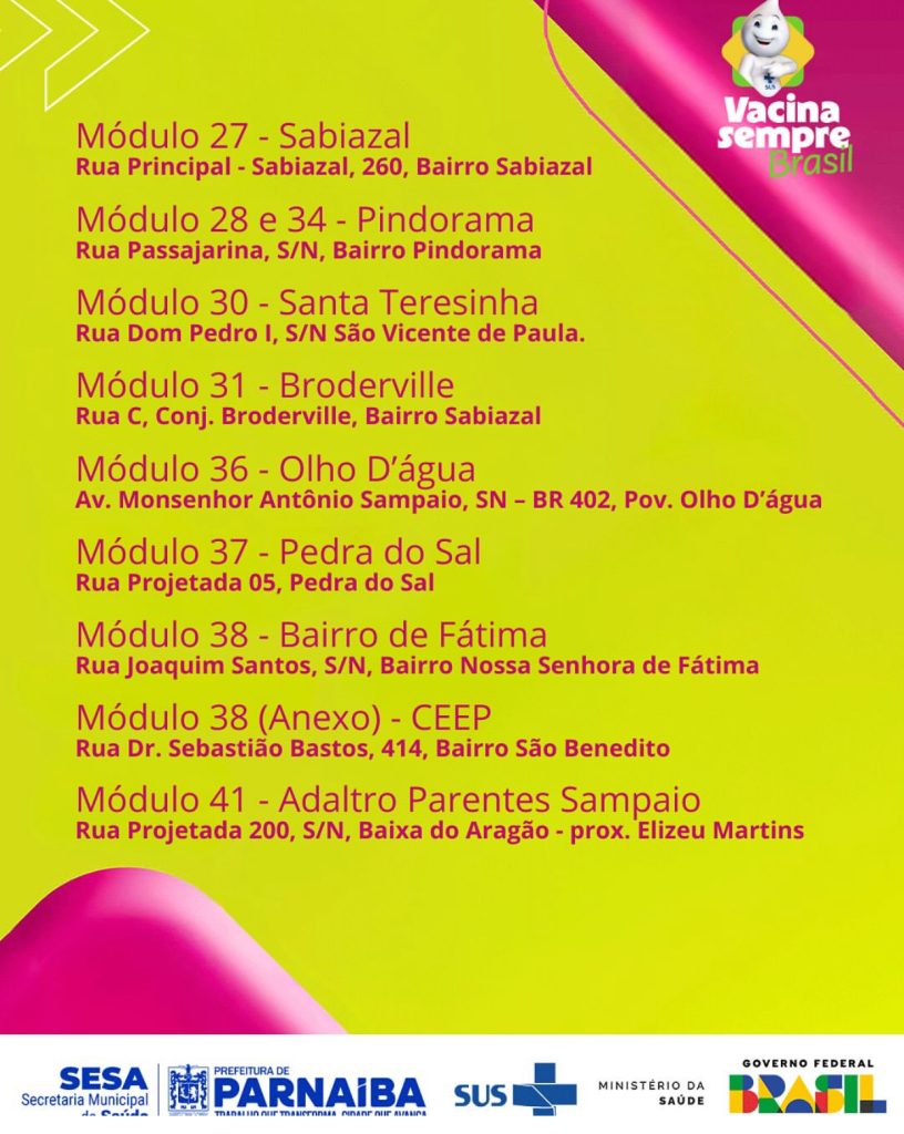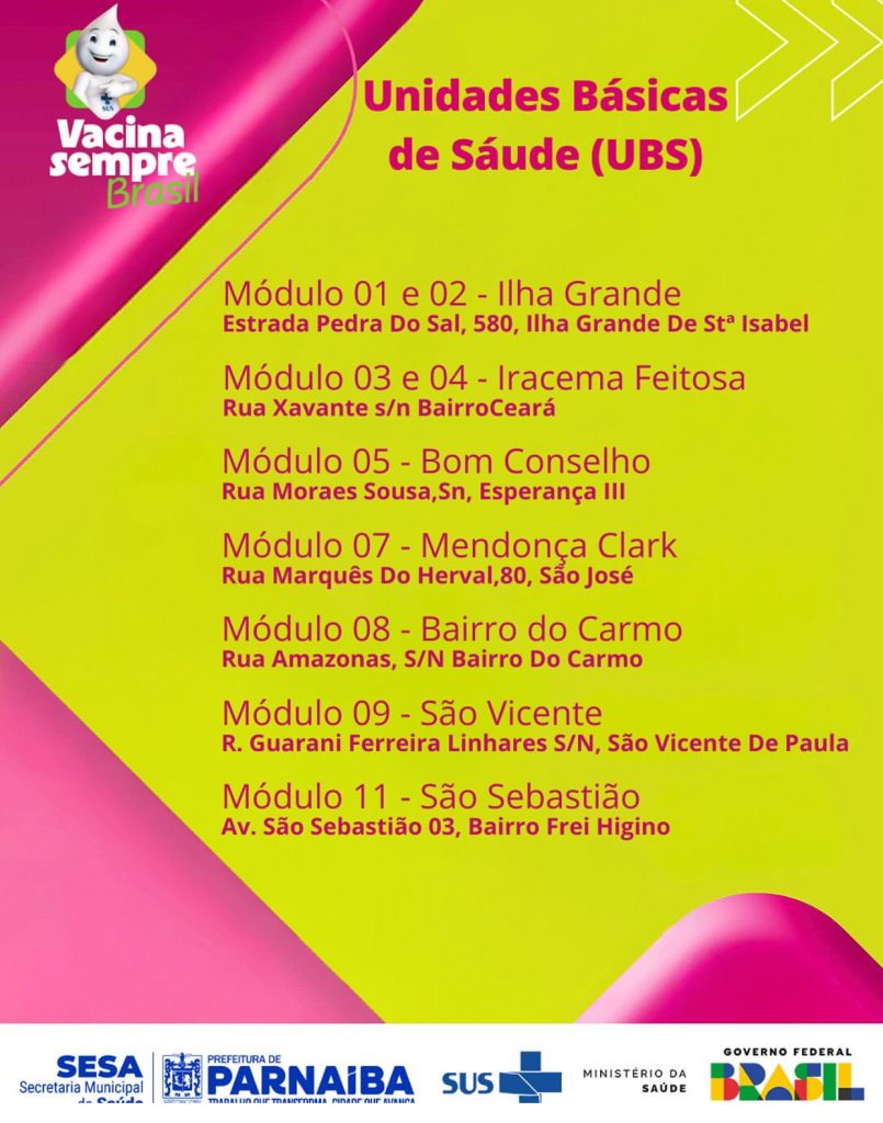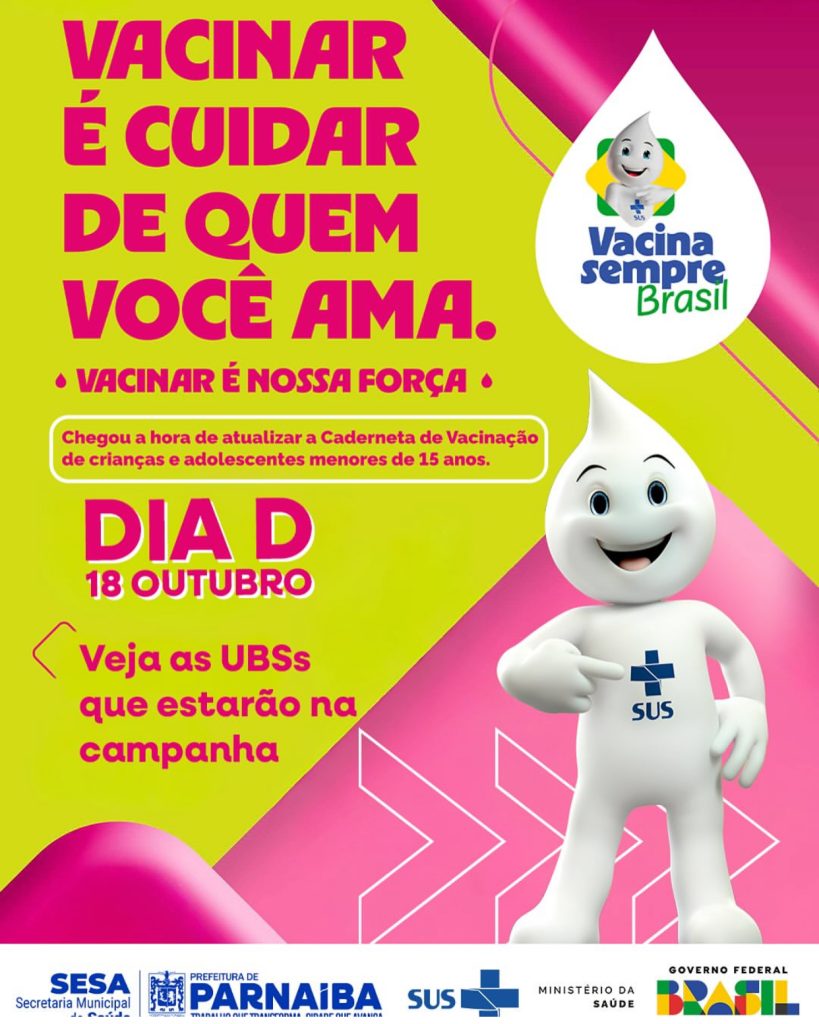 A Prefeitura de Parnaíba, por meio da Secretaria Municipal de Saúde, vai realizar o Dia D da vacinação para crianças e adolescentes de até 15 anos, para atualizar a caderneta de imunização. A vacinação será realizada nas UBS – Unidades Básicas de Saúde do município.