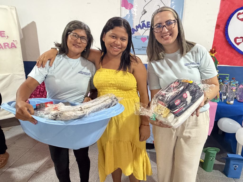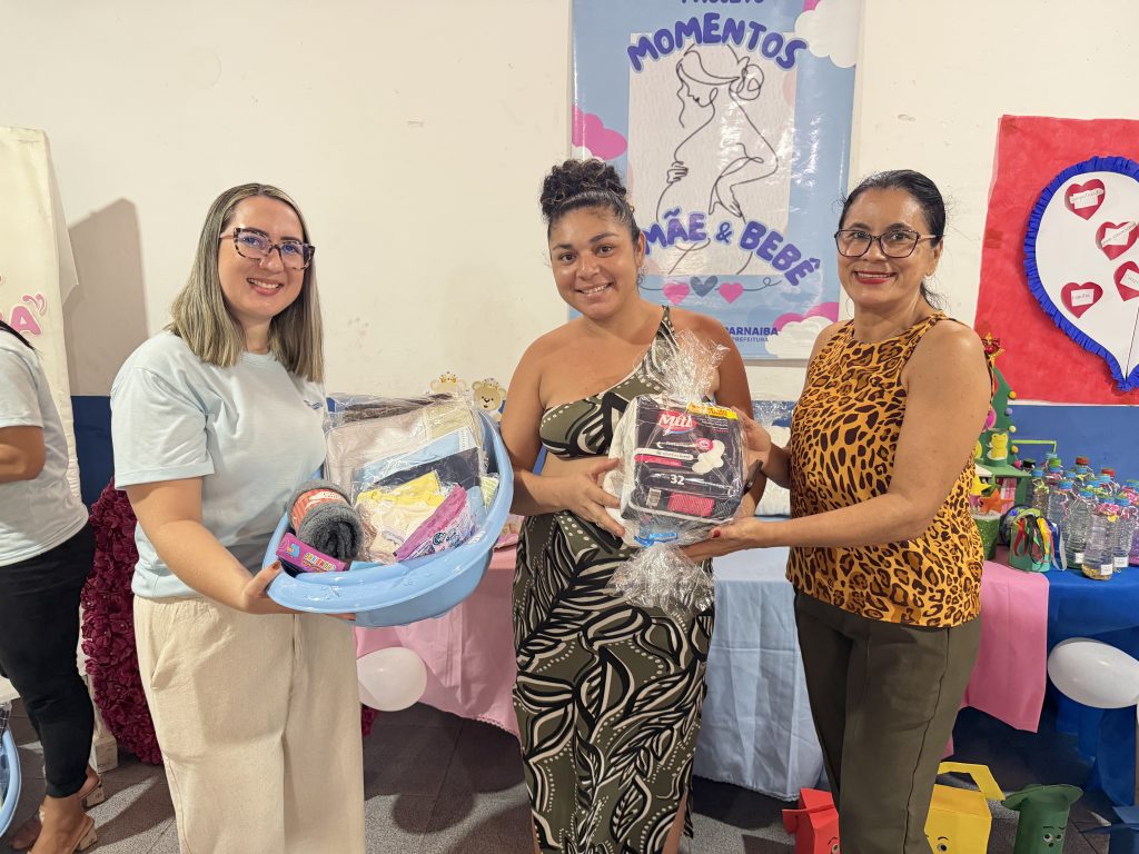 A Prefeitura de Parnaíba, por meio da Secretaria Municipal de Desenvolvimento Social e Cidadania, promoveu mais uma importante ação do Projeto Momentos Mamãe&Bebê, no CRAS João XXIII. A Primeira-Dama e Secretária Municipal de Desenvolvimento Social e Cidadania, Anália Priscilla Lima da Silva, ampliou os benefícios da ação social, com a entrega de kits de produtos de higiene para as gestantes.